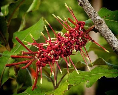 レワレワRewarewa(Knightia excelsa)は、ニュージーランド原産のスイカズラの木で、赤く変わった形の印象的な花で有名なヤマモガシ科(ヤマモガシ科)の中で最も背の高い植物です。
